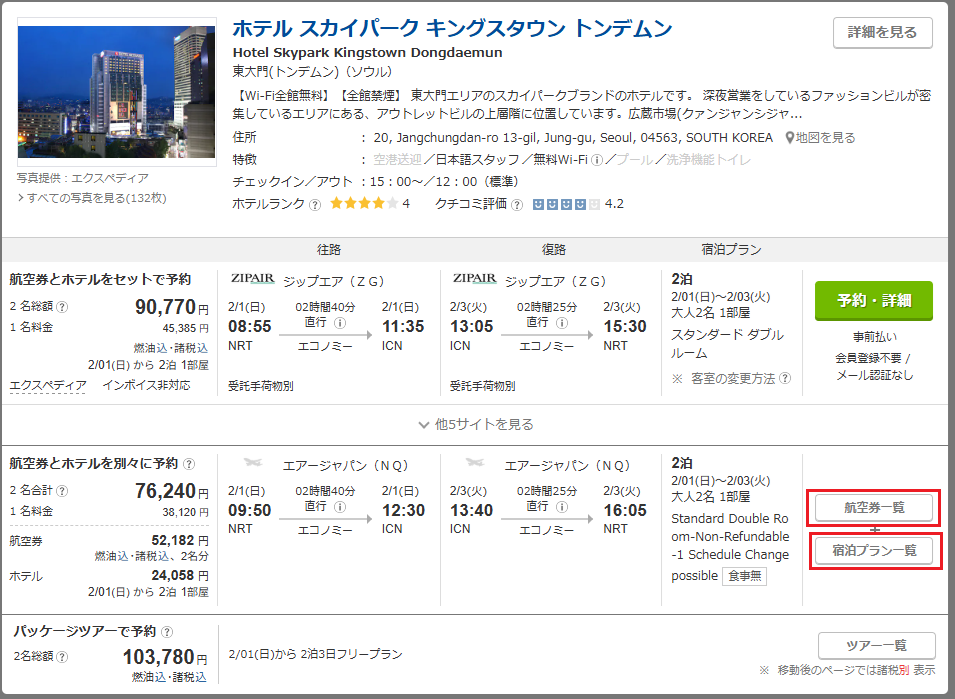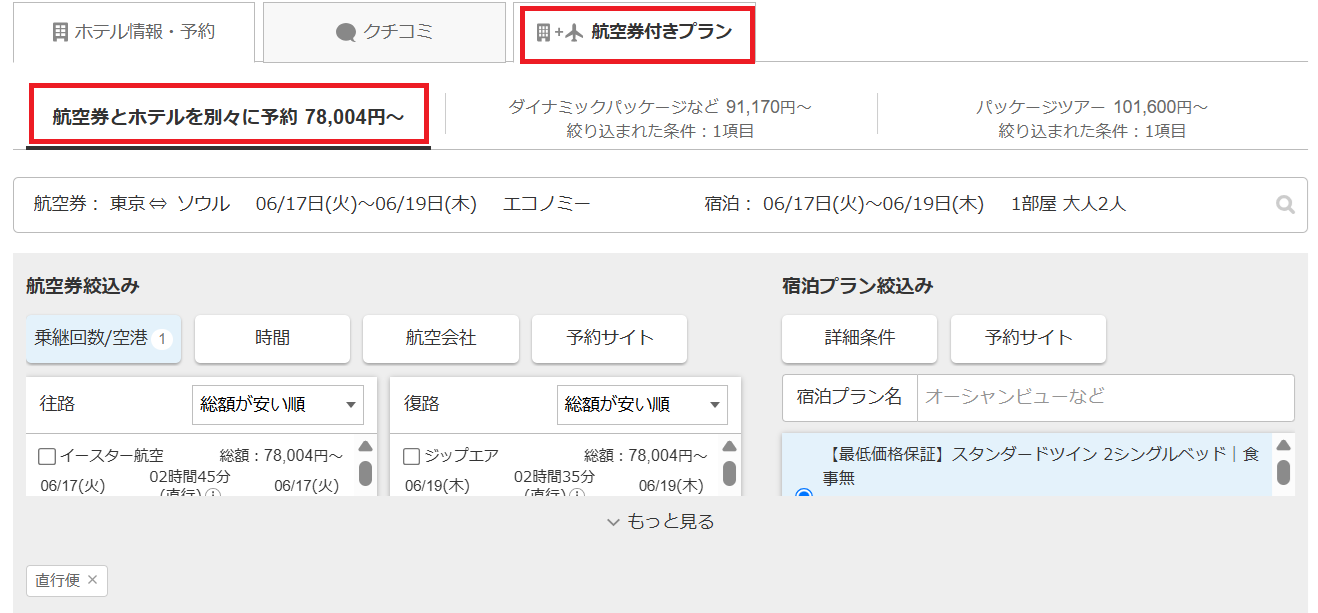 [1] 航空券+ホテルがセットの商品プラン予約方法