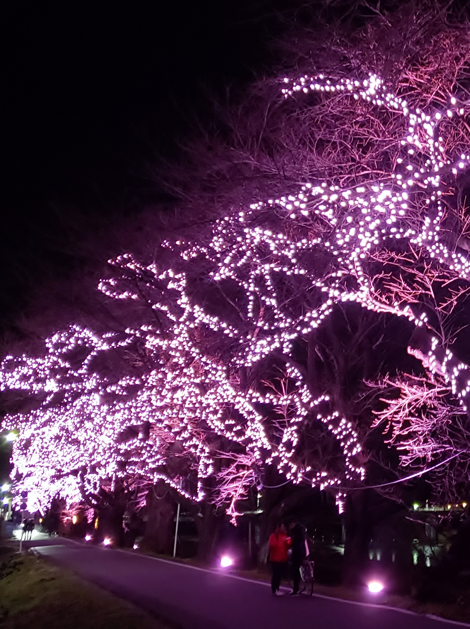・冬の夜桜見物!!春の訪れを心待ちに一目千本桜を桜色のLEDで鮮やかに彩られる