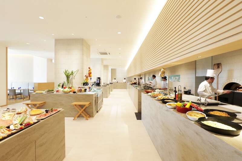 ・ご昼食は地元の食材を活かし、和洋多彩・約70品目の「シラハマビュッフェ」をご堪能!目の前で調理するライブコーナーから提供される作りたての料理をお楽しみ!