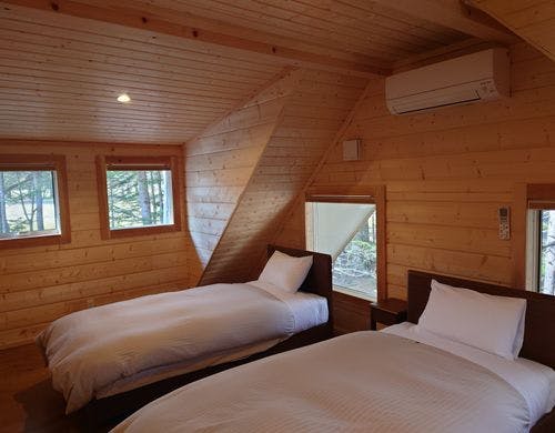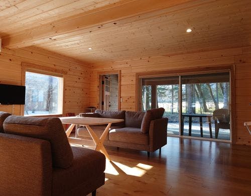 広大な敷地にプライベート重視のキッチン付のログハウスとコテージが8棟。アウトレットウエスト徒歩5分。晴山ゴルフ徒歩4分