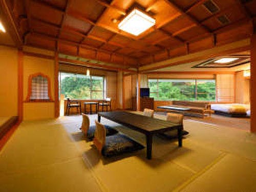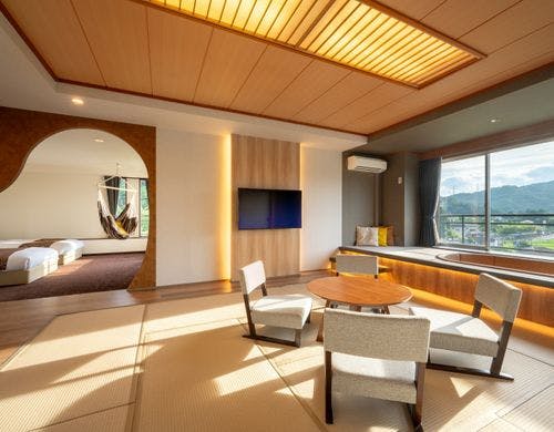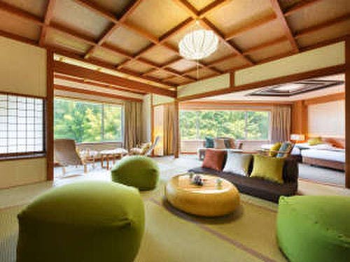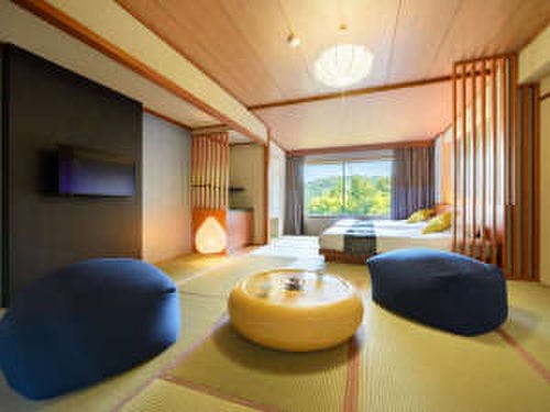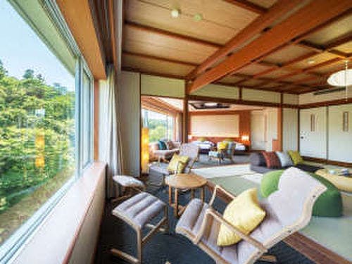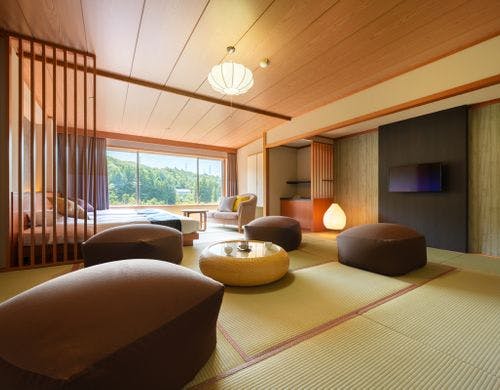 和室や洋室、貴賓室、ロイヤルスイートなど、さまざまなタイプの客室が揃っており、リニューアルされた最上階の客室からは、磊々峡の絶景を一望できます。川のせせらぎに耳を傾け、四季の移ろいを感じながら、心落ち着く特別な時間を過ごせます。