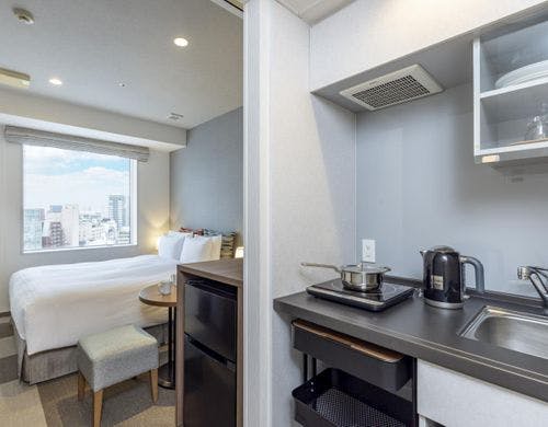 全客室に洗濯乾燥機・電子レンジ完備の充実設備&14階以上の高層階フロア♪東京の真ん中で暮らすように快適ステイ*。.