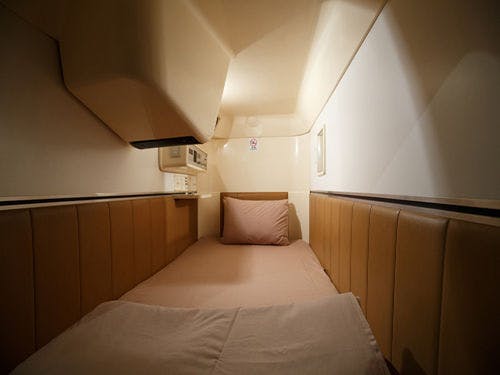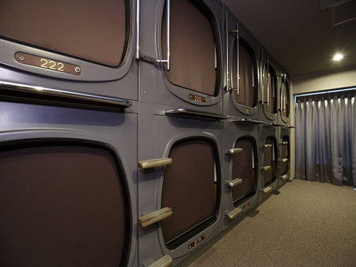 7,800円~ )カプセル全室コンセント、Wi-Fi完備、地下には大浴場、ミストサウナあり。男性専用カプセルホテル。