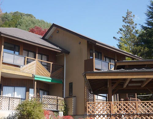 - 河口湖ICよりお車にて15分。河口湖駅からレトロバス(オムニバス)で15分。