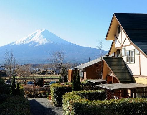 富士山絶景スポット(北岸ウォーキングトレイル)まで徒歩3分!観光スポットも徒歩圏内!雄大な富士山が目の前に広がる、快適設備・広々・綺麗が自慢の欧風貸別荘。