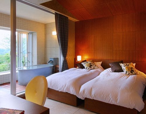 全13室 大涌谷温泉掛け流しの露天付客室!温泉旅館のくつろぎと本格フレンチを融合させた独自のスタイル