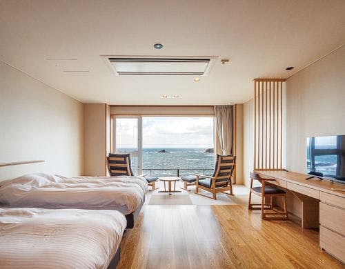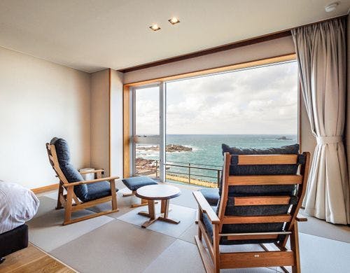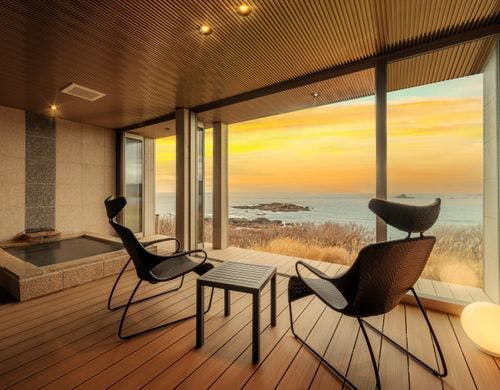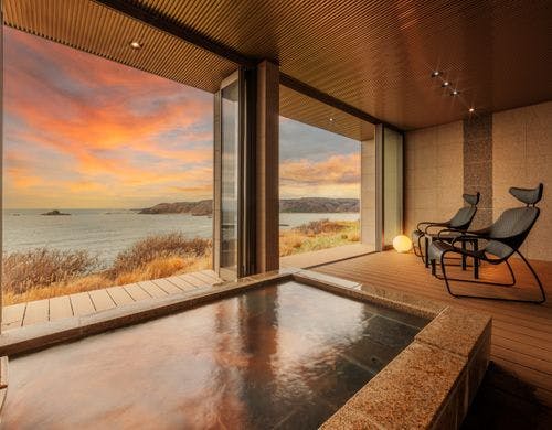 遮るものない景観は自然と調和し、四季の移ろい、波の音色を心ゆくまでご堪能いただけます。海を臨む開放感溢れる温泉と心づくしのお料理で格別のおもてなし。大切な人との贅沢な時間をお過ごしください。