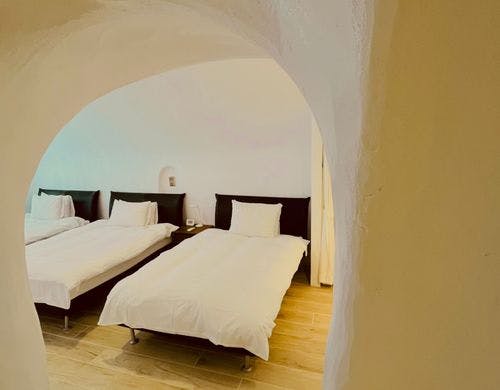エーゲ海リゾートを再現した、圧倒的なロケーションと洞窟型の室内など、ホテルの常識を超えた施設です。