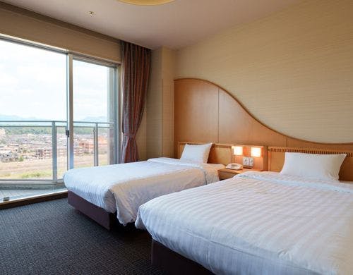 清流・三隈川の中州に佇む河岬の温泉ホテル◆源泉かけ流しの露天風呂あり◆Wi-Fi無料
