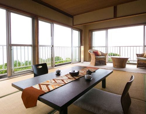 1年中いつでも新鮮な伊勢海老づくしの料理に舌鼓!全客室から海と開聞岳の絶景をご覧いただけます。番所鼻自然公園内に立地