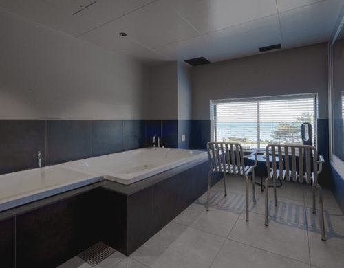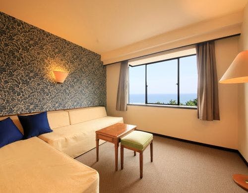 大洗の海辺に佇む「大洗パークホテル」は、このエリアでは珍しい温泉を楽しむことができるホテルです。サウナや露天風呂付きのヴィラタイプのお部屋もあり、大自然に囲まれながらリラックスした時間を過ごすことができます。館内には売店が設置されており、滞在中に必要なものや茨城名産のお菓子などを取りそろえています。周辺には日本トップクラスの飼育数を誇る「アクアワールド茨城県大洗水族館」や、ネモフィラやコキアが人気のひたち国営海浜公園などの観光スポットがあります。大洗駅から車で約10分。