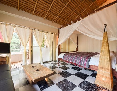 【全客室で天然温泉】湯原温泉「源泉100%掛け流し」の部屋風呂~全室異なるバリステイストの癒しプライベート空間と創作料理