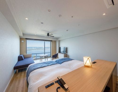 客室の特徴全室オーシャンビューで、快適なシモンズベッドと50インチのスマートTVを完備しています。ファミリー向けのコネクティングルームや和洋室のスイートルームもあり、さまざまなニーズに対応しています。また、千葉県の鉄道会社とコラボしたユニークなテーマルームも用意されています。