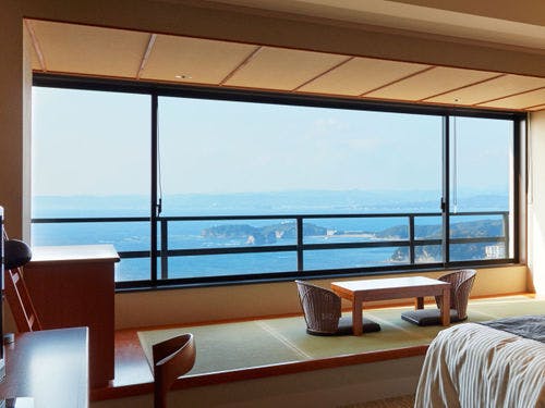 標高100m超からの眺望、和歌山県朝日夕陽百選の景色、伝統ある「行幸の湯」を源泉掛流し…至福の時間をお過しください。