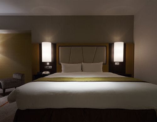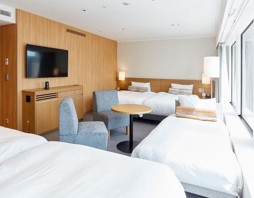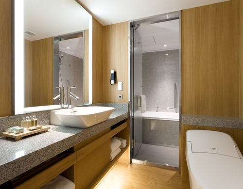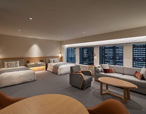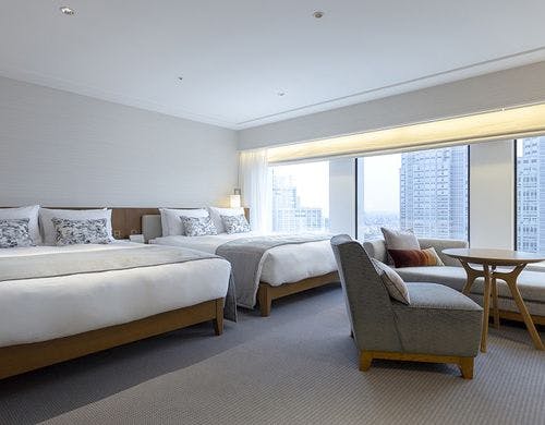 ホテルは本館と南館の2つのタワーで構成され、本館35~41階の客室「プレミアグラン」では最上級の癒し空間を提供しています。南館の客室「プラザリュクス」は、洗練された大人のリラックス空間が特徴です。さらに、檜風呂付きの和室や、ユニバーサルルーム、家族向けのフォースルームなど多様な選択肢があり、用途に応じてお選びいただけます。