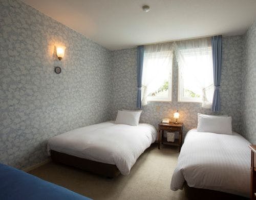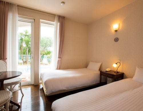 13,500円~ )地中海リゾートを想わせるプチホテル。全室バストイレ付。朝食は10:00迄、アウト11:00でゆったりと癒しの休日を