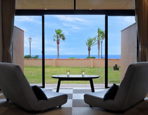 花と海と太陽と四季折々の豊かな自然を満喫できる。やさしい潮騒と心くすぐる潮風に包まれた温泉宿!