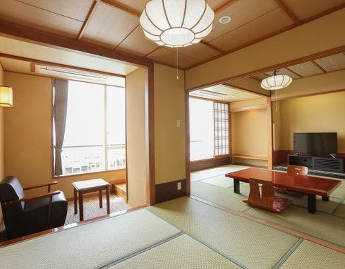 お食事は多彩なバイキングスタイル! ご夕食時は生ビールなどアルコール類は飲み放題!太平洋を一望できる海眺望和室がおすすめ
