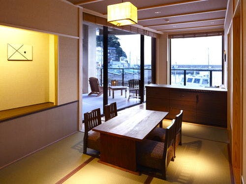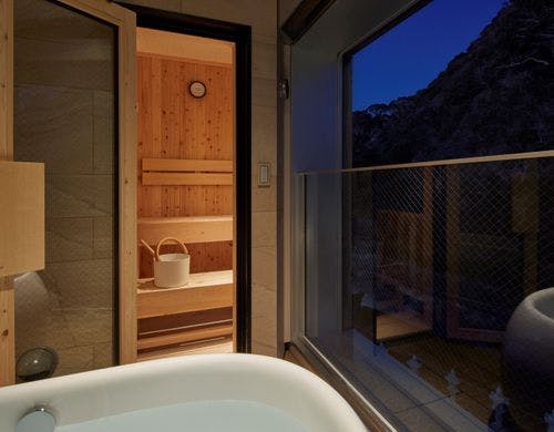 スパ&テラス「THREE」オープン!温泉半露天風呂&テラス付き客室と個室食事処。