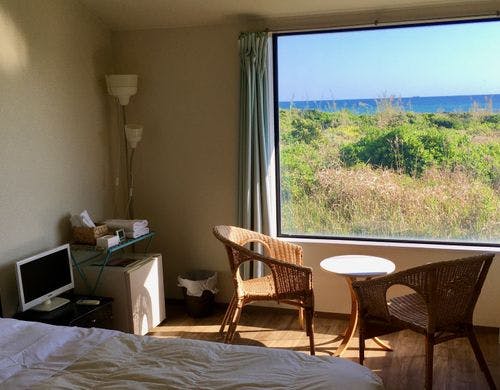 フラワーライン沿に建つ全室オーシャンビューのペンション 目の前の海まで徒歩1分 夏でも人がまばらな秘密のビーチです