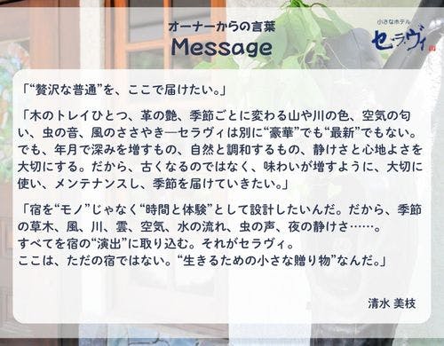 54,370円~ )アンティーク家具や65種以上の野菜を使用したお食事など、非日常を体験いただける「5組様限定」の小さなオーベルジュです。