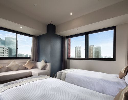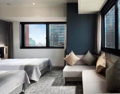 【2022年夏、一部客室リニューアル】全室高層階19平米以上。都会の眺望が自慢の落ち着きあるお部屋で快適なご滞在を。