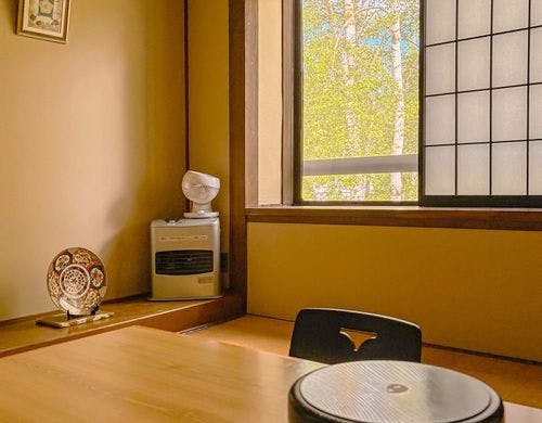 露天風呂のある温泉を併設した和室仕様のロッジ♪松本市街地から少し離れて人混みから解放できる場所です
