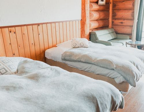 ★ペットと泊まれる宿★<2023年12月 全客室のバスルーム改装>木のぬくもりが心地良い全7室の大型ログハウス。