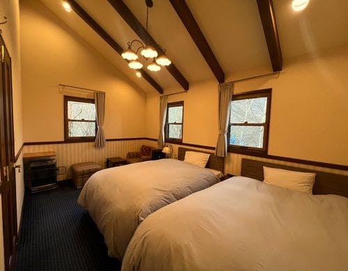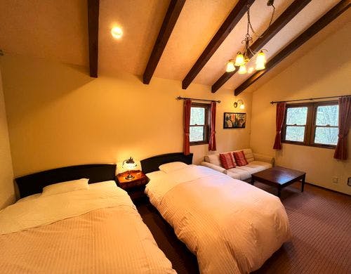 【東急リゾートタウン蓼科内】の小さな宿。標高1500m。こだわりの牛タンシチューが人気。りすや鹿等森の動物に出会えるかも