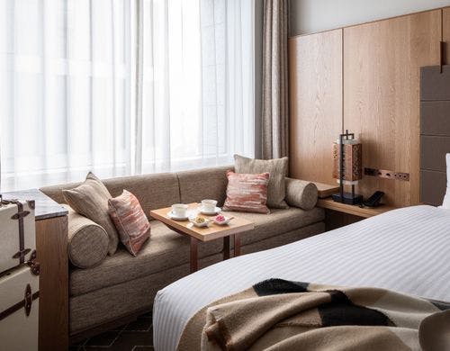 都営地下鉄三田線 芝公園駅から徒歩1分。宿泊ゲスト専用ラウンジ・パティオでは寛ぎのひとときをお過ごしいただけます。