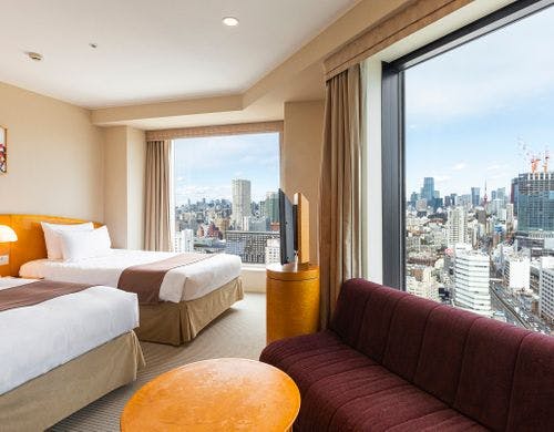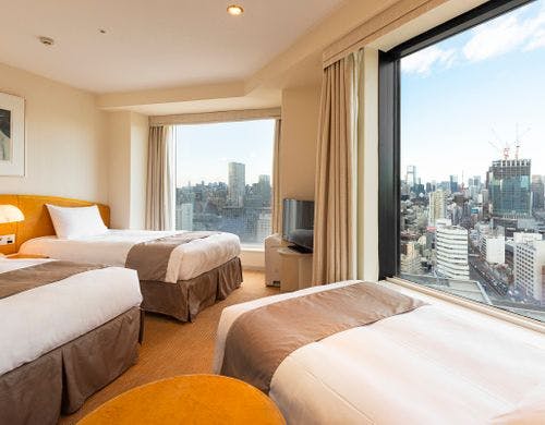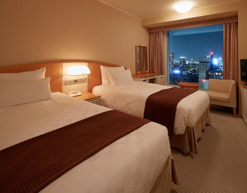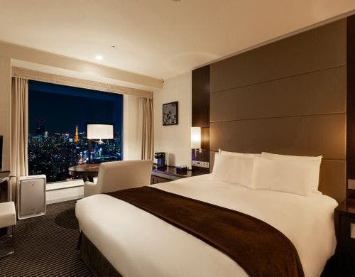 客室はメインタワー、アネックスタワー、Nタワー、イーストタワーの4つの棟に分かれています。高層階の客室からは東京の夜景を一望することができ、東京タワーや富士山を望むお部屋も用意されています。メインタワー36Fにある一室限定のスーペリアダブルルームでは、浴室から都会の夜景を望むビューバスがあり、非日常的なホテルステイを堪能できます。