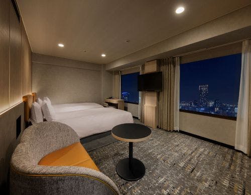 駅近で東京観光・ビジネス・ライブ遠征にぴったり!高層階からの景色が好評で全室スマートTV対応。最上階のバーもおすすめ!
