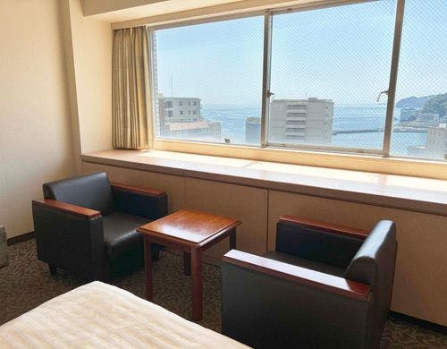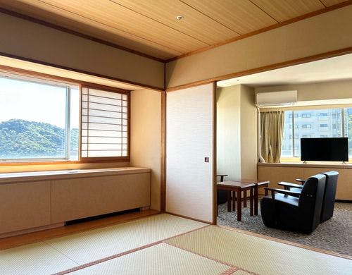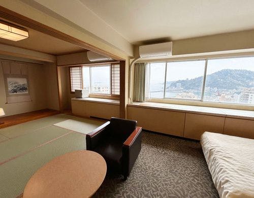 JR熱海駅より徒歩2分。ホテル直下より汲み上げられる自家源泉や15種類の天然薬石を使用した岩盤浴がお楽しみ頂けます。
