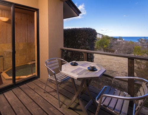 伊東温泉の温泉街と美しい海を眼下に望む全5部屋の小さなおこもり宿。何もしない贅沢、プライベートを満喫したい方にお勧め