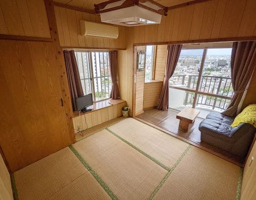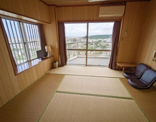 空港からバス一本で行ける好立地!那覇を一望できる高台からの眺望が自慢です。朝食は沖縄家庭料理をご提供。