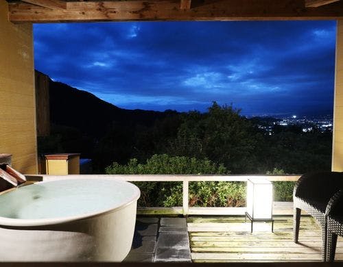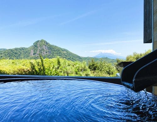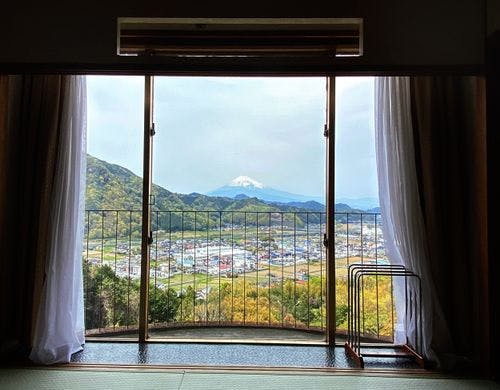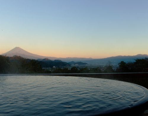ロビーからの壮大な眺め、客室の窓からの秀逸な景観。そして圧巻は富士に抱かれるように感じる露天風呂からの景色。