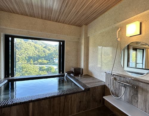 全客室に大型サイズの天然温泉半露天風呂を完備!大人の隠れ家で湯ったり!