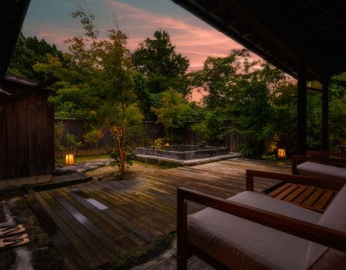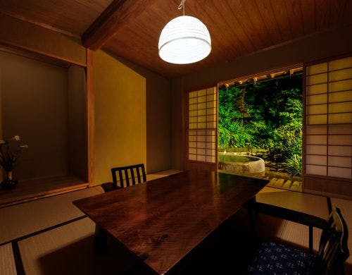 お豆腐屋さんから始まった一日5組限定の小さなお宿です。全室離れ一軒家に内湯と露天風呂付。9月中にプラン販売予定です。
