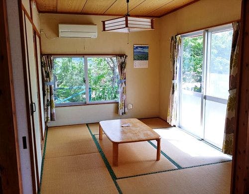 美ら海水族館まで車で10分!周囲を木々で囲まれた山の中腹にある1棟貸しの貸別荘です♪調理道具有りますので自炊できます