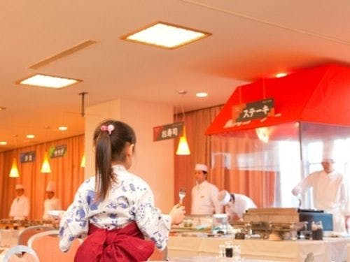 名湯「鉄輪温泉」の中心に位置する宿。黒毛和牛のステーキを含む全70種類豪華バイキング!