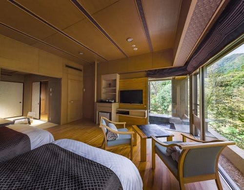 谷川岳の麓に佇む近代和風旅館。清流の音を聴きながら、各部屋の露天風呂をお楽しみ頂けます。全室Wi-Fi対応可!