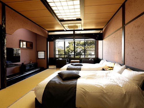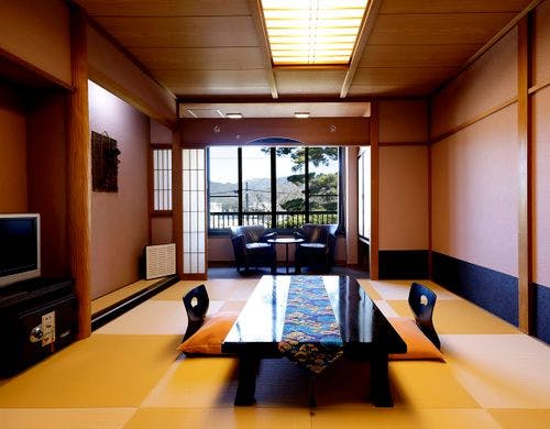 わずか6室の料理宿。伊勢エビと地魚6種の舟盛、アワビとボタンエビの海鮮しゃぶしゃぶを堪能。3種の貸切露天も無料