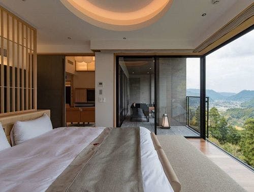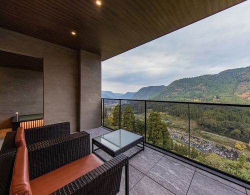 - 福岡空港→日田IC(九州自動車道→大分自動車道)約60分→奥日田温泉うめひびき(国道212号)約25分
