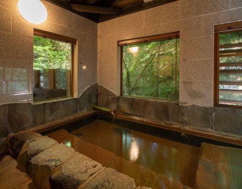 黒川温泉で唯一日本の名湯百選に選ばれた露天風呂・滝の湯・美人湯その他13種類のお風呂で湯めぐりをお楽しみ下さい