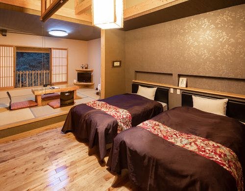 41,400円~ )四季折々の季節感、清流の音を聞きながら自分だけの時間(とき)を過ごせる。全ての客室露天風呂が付いています。