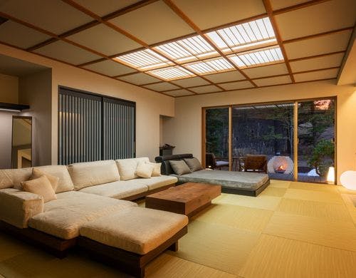 和洋の長所が融和した、趣き異なる客室。客室すべてに露天風呂、自然が織りなす渓谷美