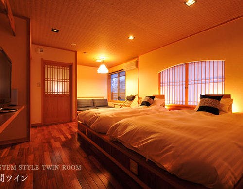 標高1340mのバラギ高原で、雄大な自然に包まれる高原のホテルラパン。8部屋全てに半露天風呂とダイニングを備え、うち2部屋に岩盤浴を完備、独創フレンチとゆっくりとした時間をお過ごしください。