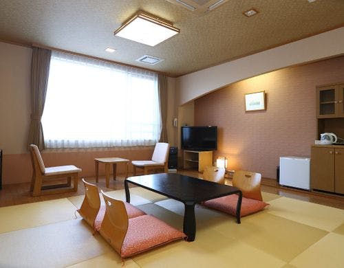 見晴らしの良い高台に位置する公共の宿。夜になるとライトアップされる青の洞窟温泉は、美しい夜景とともに幻想的。