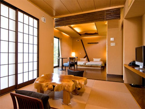 全室一戸建て露天風呂付き離れの客室で、一番大切な人と、時の流れを忘れる和みのひと時を過ごす。