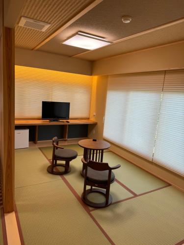越志旅館のすべてのお部屋に共用バスルームが備わり、一部のお部屋にはシーティングエリアもあります。